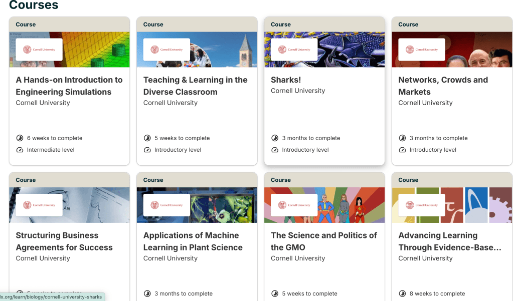 Si llegaste hasta aquí, comentame y contame si sabias de esta información, motívame pues a seguir escribiendo, y si me conoces estas leyendo esto en modo caleño, y te tengo que contar algo más , Cornell Tiene cursos gratis y a bajo costo, yo aún no los he probado pero puedes ir este link y encontrar mas información : https://www.edx.org/school/cornellx